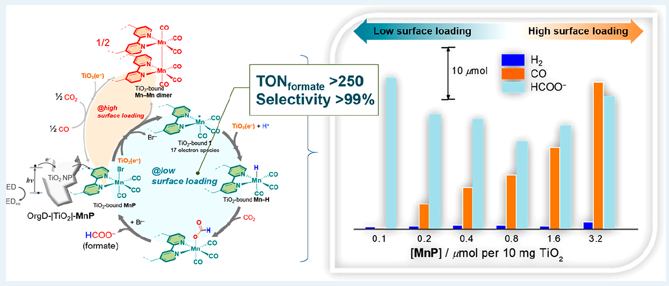 Highly Selective and Durable Photochemical CO2 Reduction by Molecular Mn(I) Catalyst Fixed on a Particular Dye-Sensitized TiO2 Platform