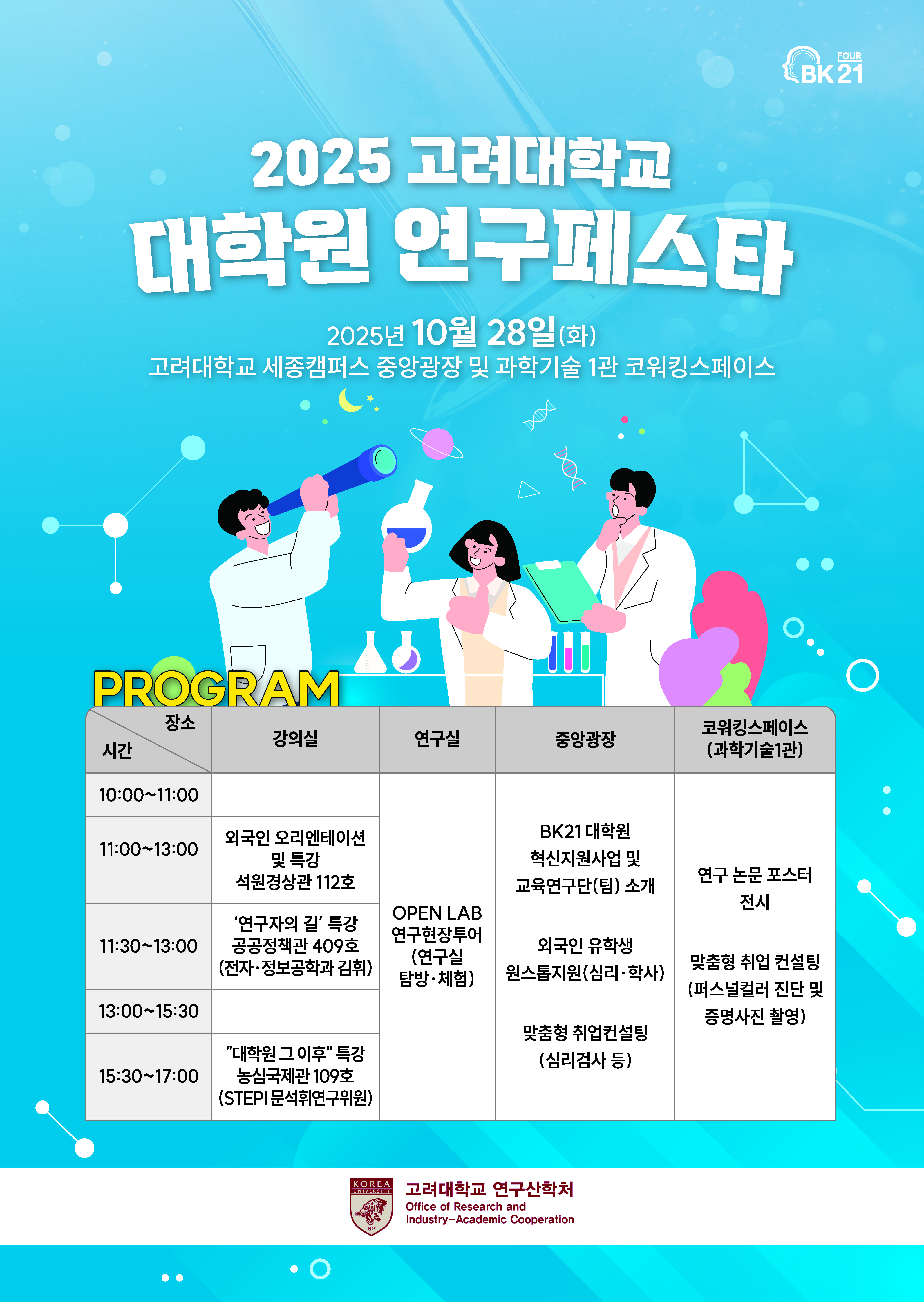 [안내][BK21대학원혁신지원사업]2025 고려대학교 대학원 연구페스타 개최 안내