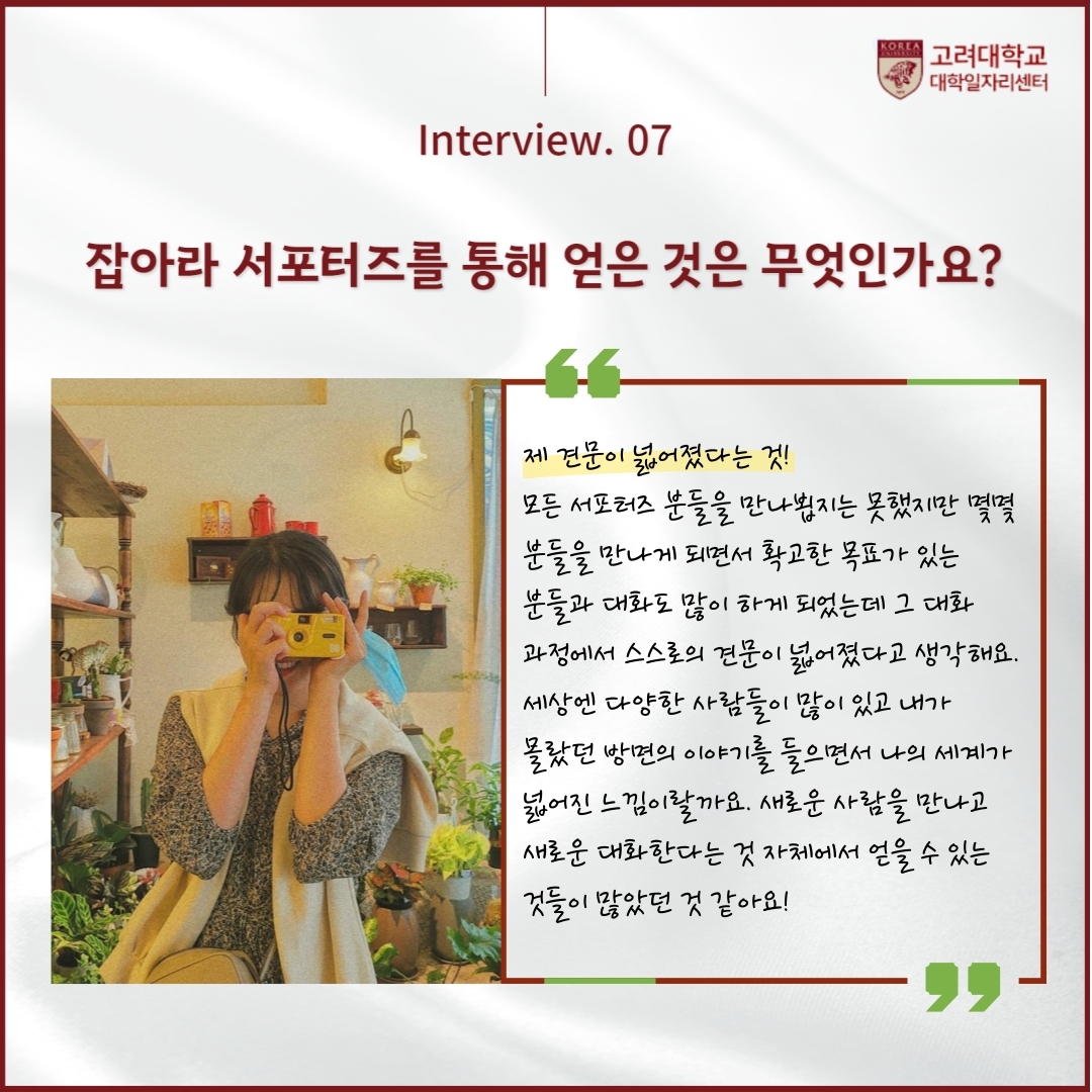 [잡(JOB)아라 서포터즈 5기 인터뷰] 사회학과 박수련 편