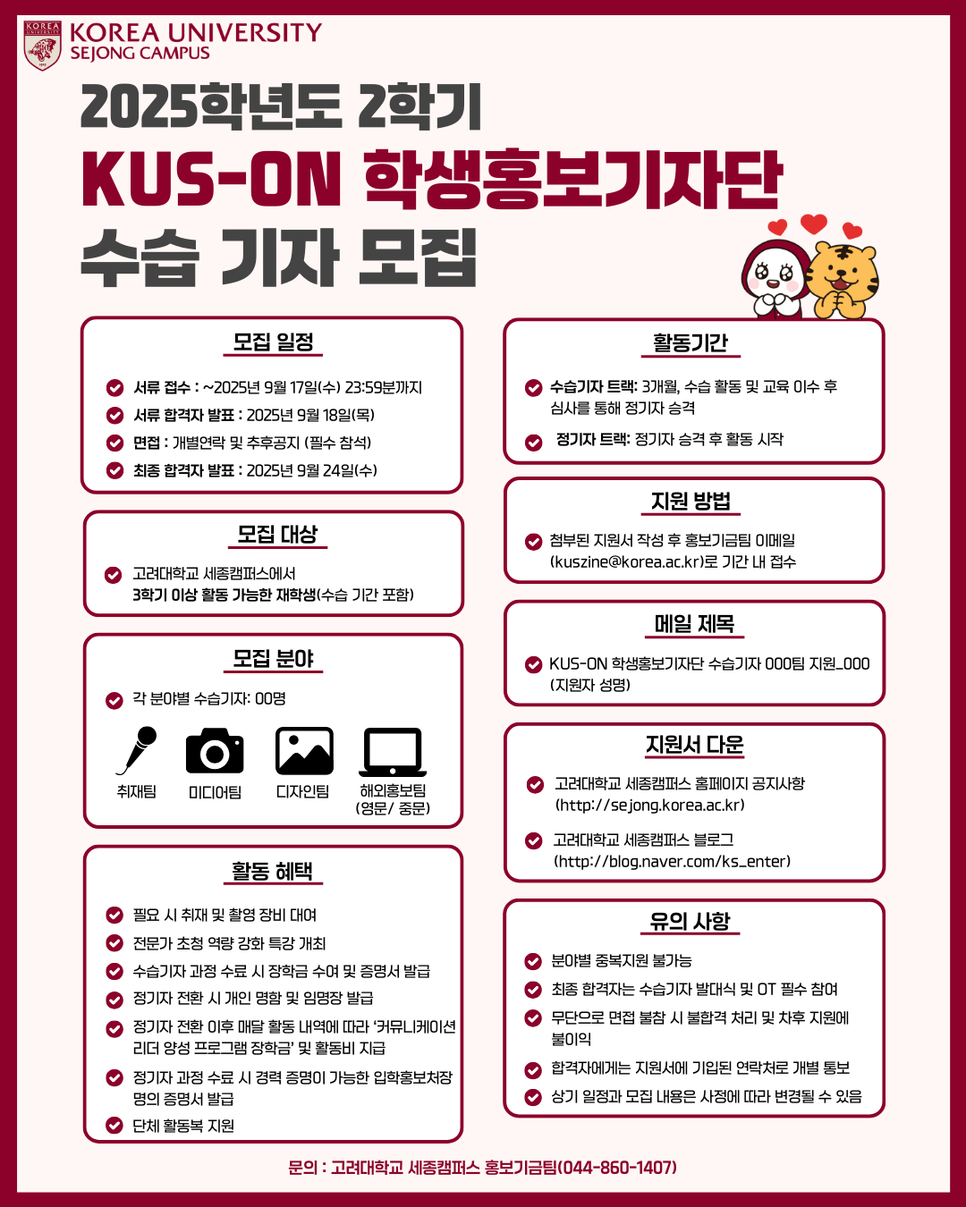 代表高丽大学的学生宣传组织“KUS-ON学生宣传记者团”现招募2025学年第二学期实习记者。