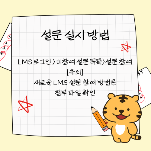 - 실시 방법: LMS 로그인 → 미참여 설문 목록 → 설문 참여