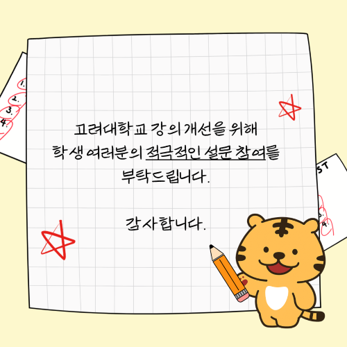 7. 강의 중간평가제도가 수업 운영 개선에 기여하는 제도로 자리매김할 수 있도록 학생 여러분들의 적극적인 참여를 부탁드립니다.