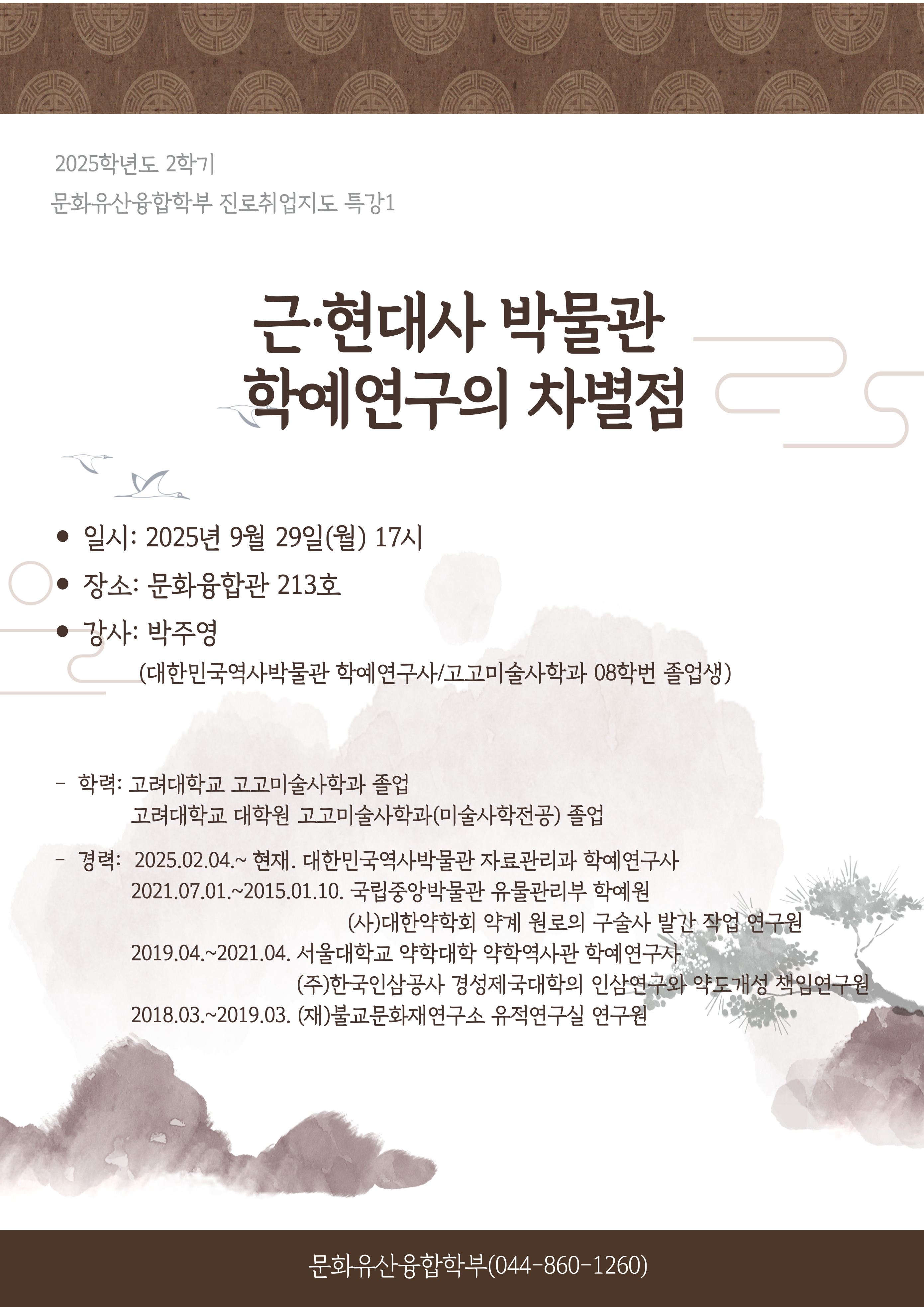 2025-2 문화유산융합학부 진로취업지도특강1 안내(9/29)
