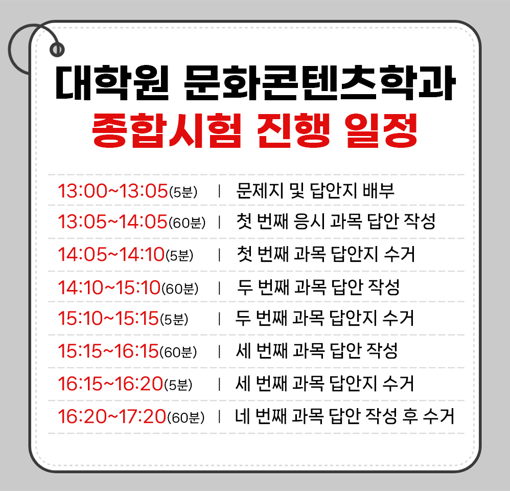 2) 과목별 응시 시간은 1시간입니다. 1시간마다 1개 과목의 답안을 수거합니다.