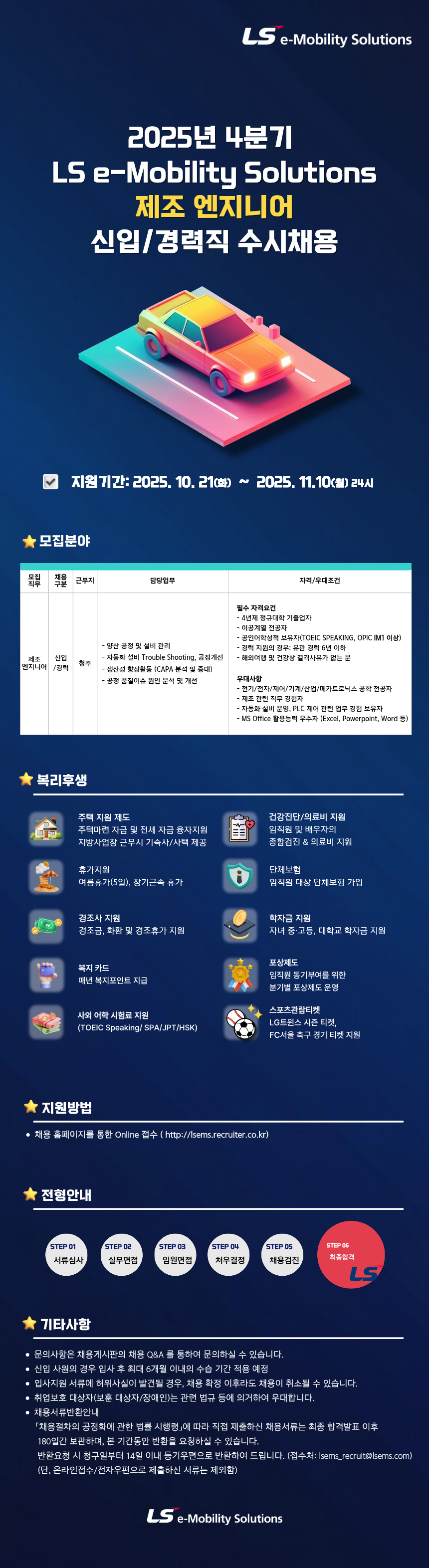 [LS이모빌리티솔루션] ~11/9 ( [LS그룹] 제조 엔지니어(전기,전자,제어,기계) )