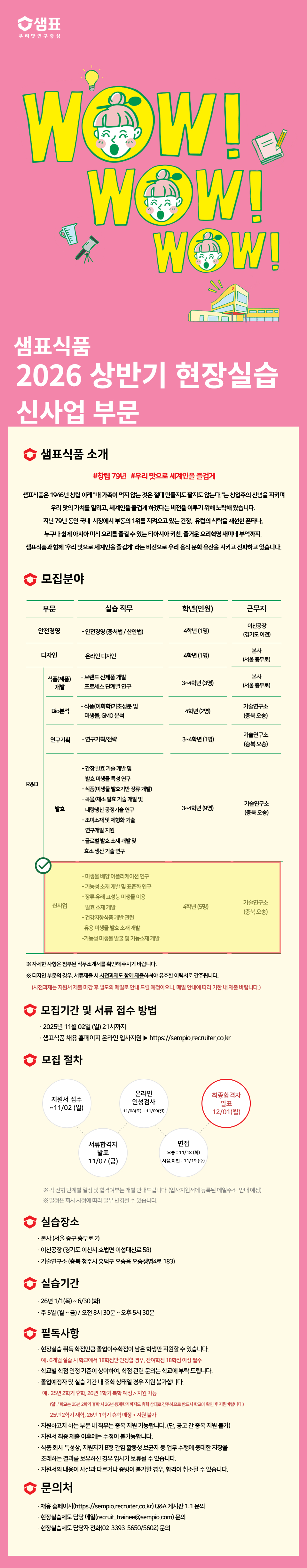 총 7개 모집분야 (안전경영/디자인/R&D(식품개발, Bio분석, 연구기획, 발효, 신사업))