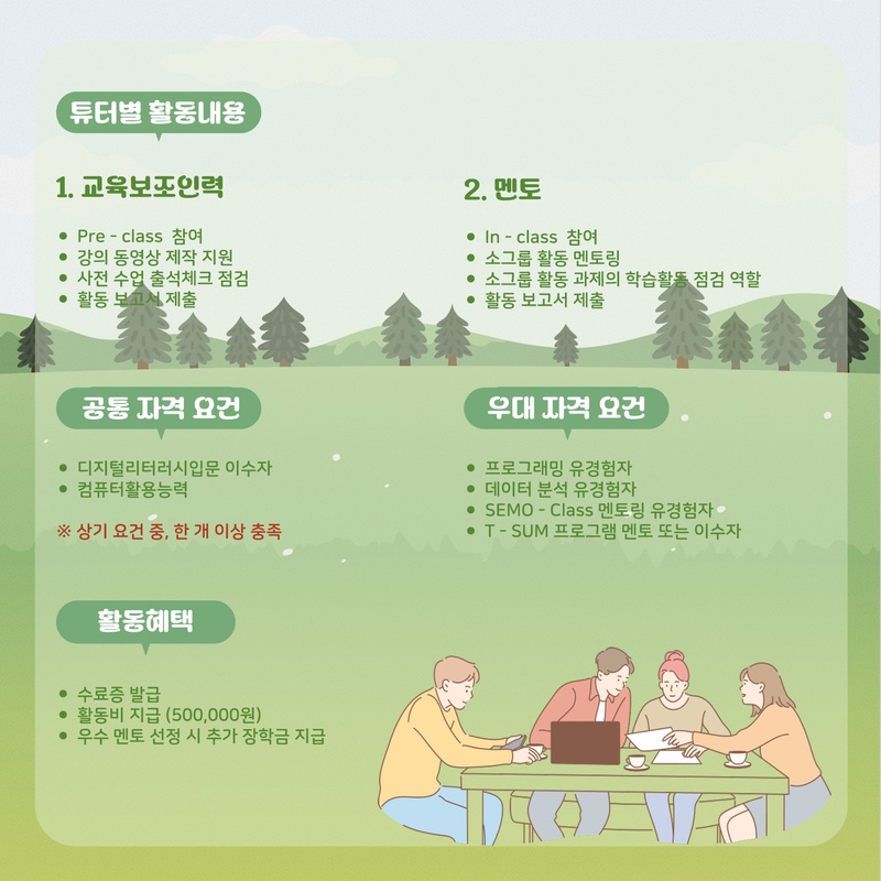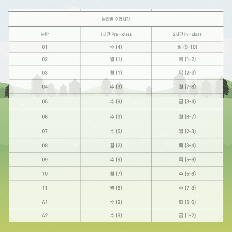 멘토 지원자는 2시간 In-class와 본인의 수업 시간이 중복되지 않아야 합니다.