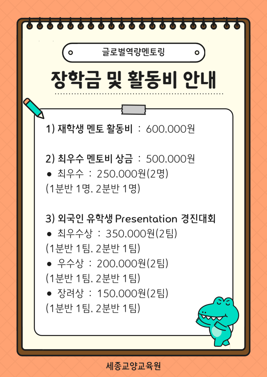 [세종교양교육원] 2025학년도 2학기 글로벌역량 프로그램 재학생/교육 멘토 모집