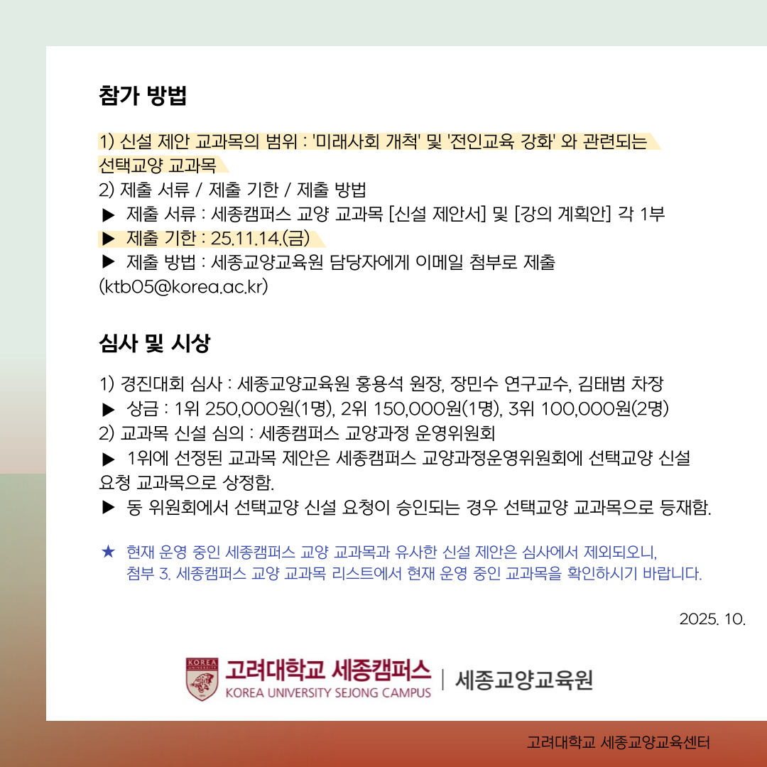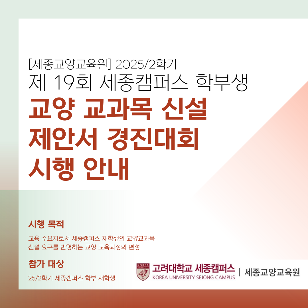 [세종교양교육센터] 제20회 세종캠퍼스 학부생 교양 교과목 신설 제안서 경진대회 시행 공지