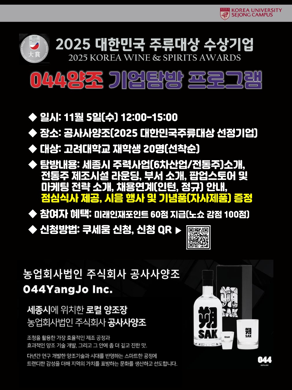 [고려대학교] '2025_2학기 세종시 기업탐방 프로그램' 사전조사& 개인정보동의