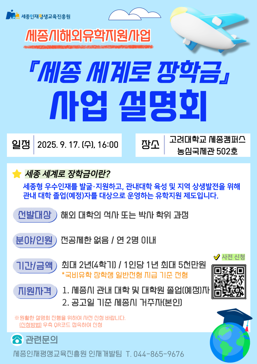 2026년 「세종 세계로 장학금」 해외유학지원사업 설명회 안내
