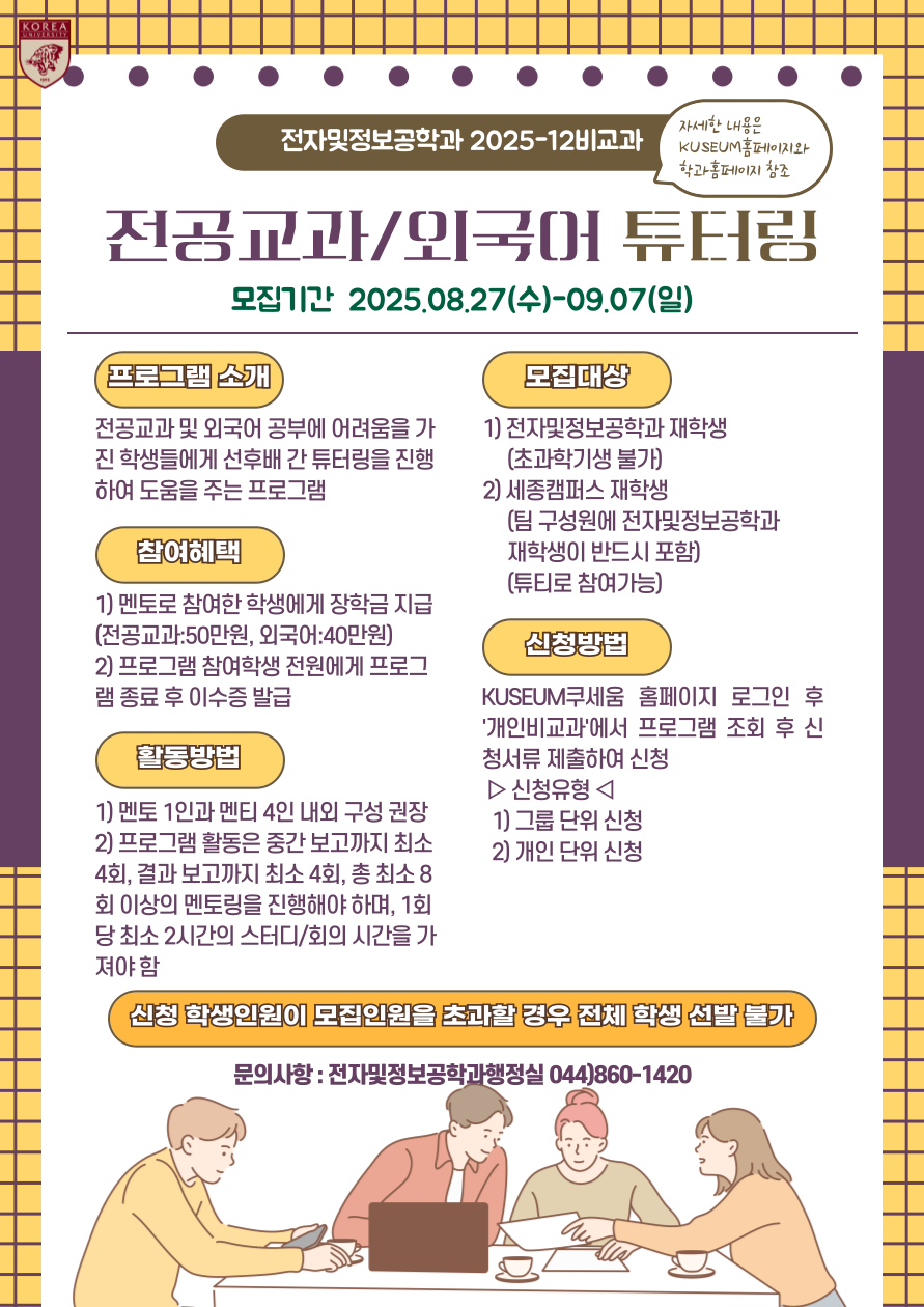[2025-2] 전자및정보공학과 전공교과/외국어 튜터링 학생 모집 안내