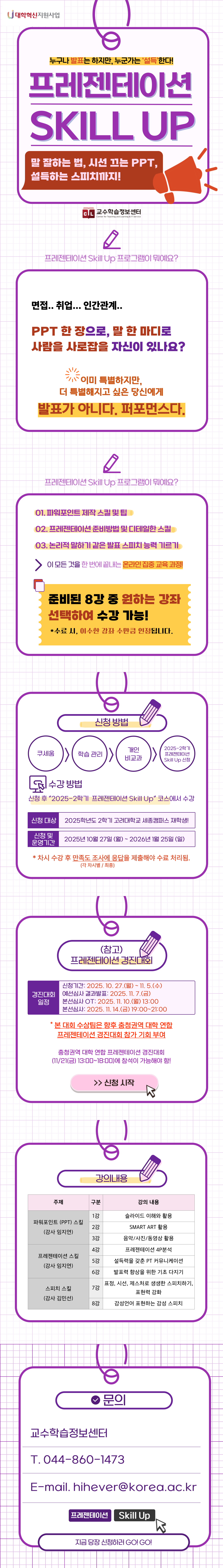 아래와 같이 2025-2학기 프레젠테이션 Skill Up을 운영합니다!