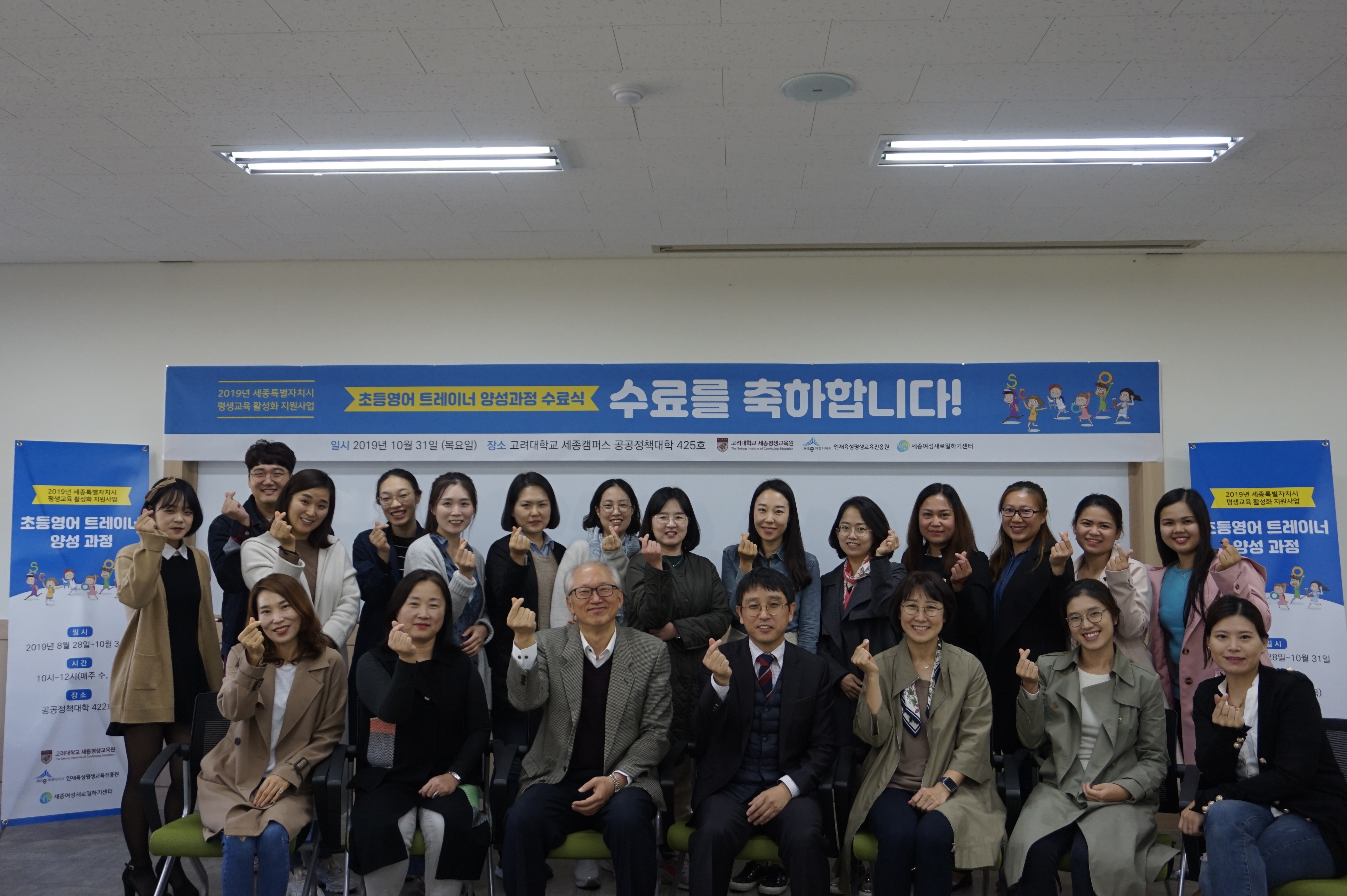 고려대학교 세종평생교육원은 지난 10월 31일 초등영어 트레이너 양성과정 수업 수료식을 공공정책관 425호에서 진행했다고 밝혔다.