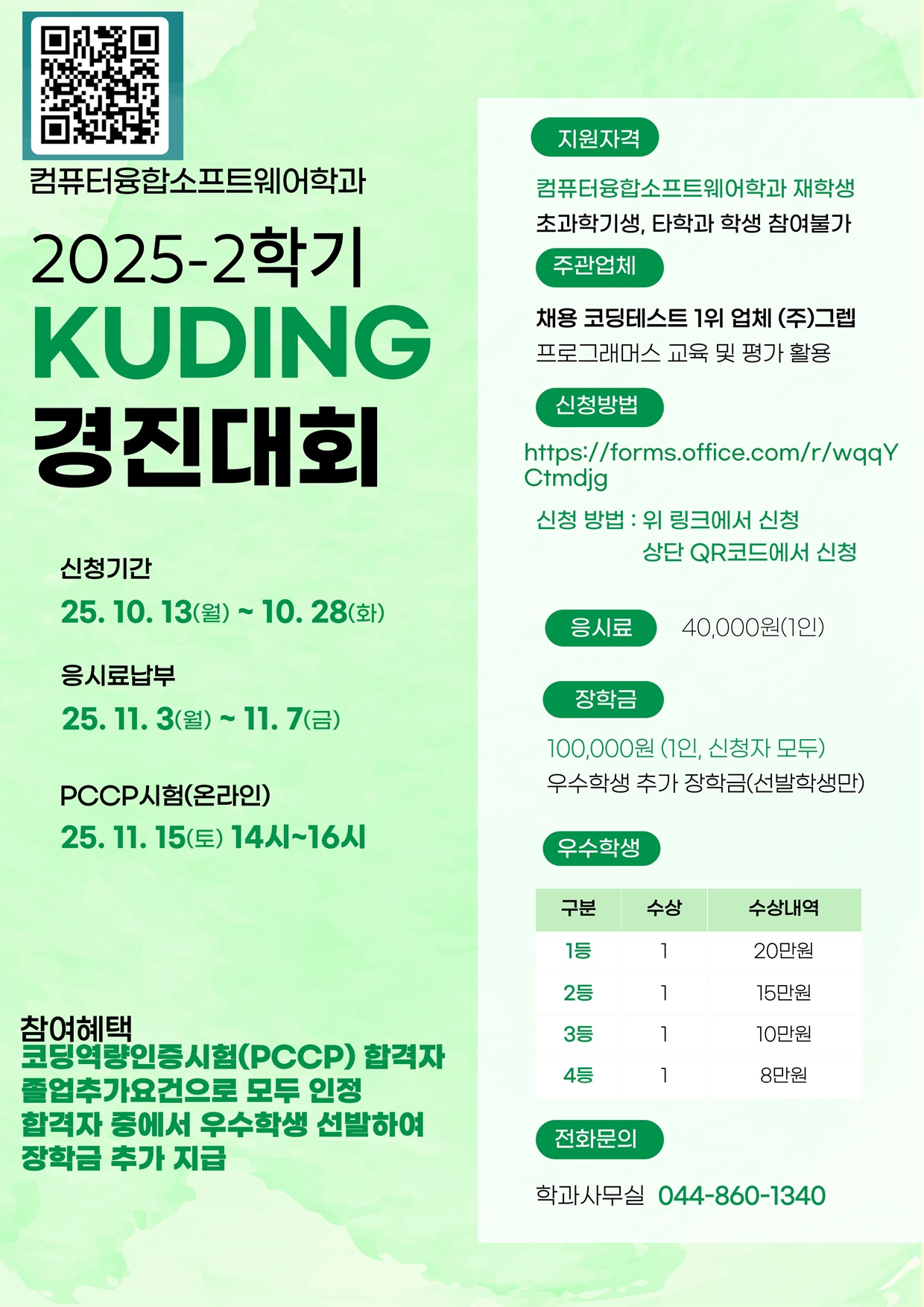 2025-2학기 KUDING 프로그래밍 경진대회 신청자를 모집하고자 합니다.