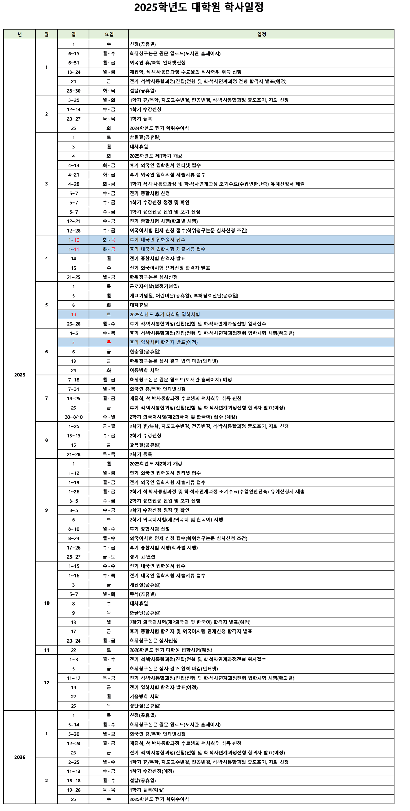 학사일정