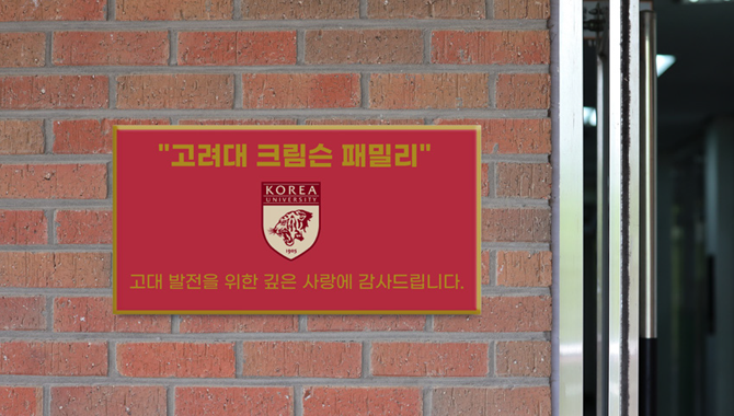 * '고려대 크림슨 패밀리' 캠페인 참여 시 기부자님 사업장 게시용 현판 증정 (구좌 수에 따른 크기 상이)