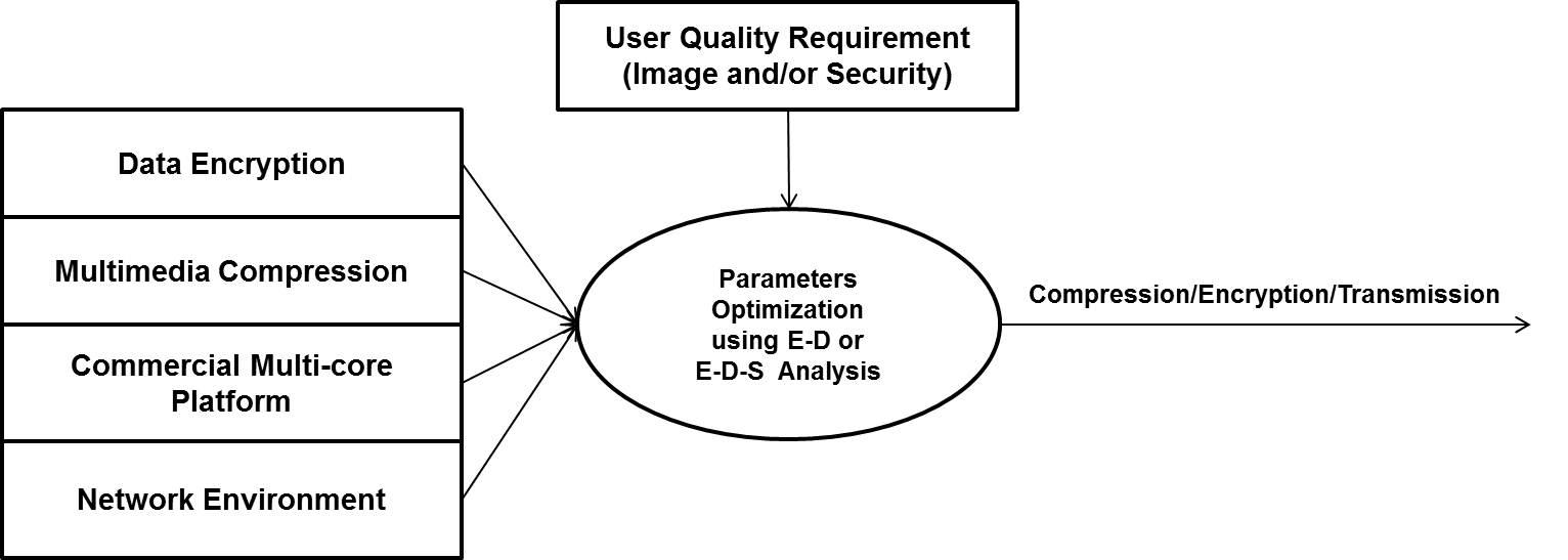 - To increase energy efficiency, the computer architectural approach controlling the frequency and/or the number of cores at hardware/software level, and the compression approach at algorithmic level have been proposed. In the computer architectural approach, there is a tradeoff between power consumption and execution time. That is, if we increase the frequency, the power consumption is increased while the execution time is decreased. In the image compression or information security, we can improve the performance efficiency at algorithmic level and/or derive the optimal applications parameter based on the tradeoff between the video/security quality and the energy consumption. We are researching the analysis of machine characteristics and parallel applications(multimedia/crypto/image processing algorithms) characteristics collectively, and thus improve the energy efficiency of compression using a commercial multi-core platform.